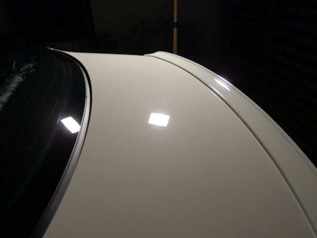 It is very difficult to document paint issues with white pain as there is less contrast between the paint and the defects. Upon closer inspection with a halogen lamp, the issues with the paint become more obvious.
